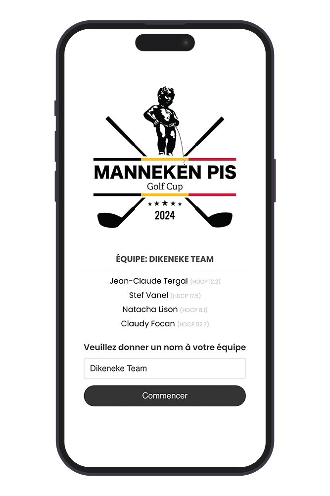 Bienvenue dans le guide de l’application de scoring de la Manneken Pis Cup, l’outil idéal pour suivre en temps réel les performances des joueurs lors de la compétition. Suivez ces étapes pour comprendre le fonctionnement de l’application et profiter d’une expérience fluide lors de l’événement au Golf du Sart.