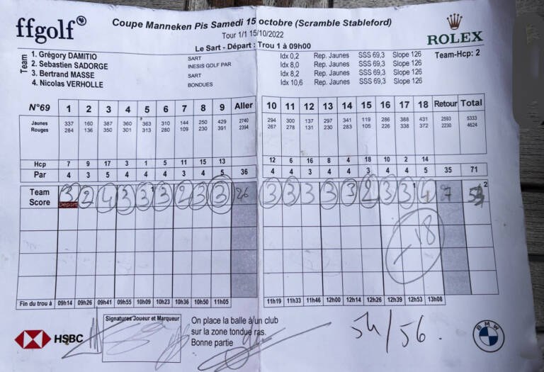 En 2022, un record impressionnant est réalisé lors de la compétition, avec un score de -18 ou 53 coups en strokeplay par l’équipe de Nicolas, Sébastien, Bertrand et Grégory. Ce moment est marqué comme un exploit dans l’histoire de la Manneken Pis Cup.